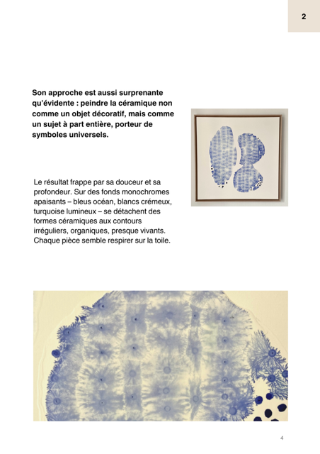 Elle présente aujourd’hui la série Céramica, l’aboutissement d’une recherche sur la peinture, la sculpture, la matière et le pouvoir des couleurs sur nos émotions.